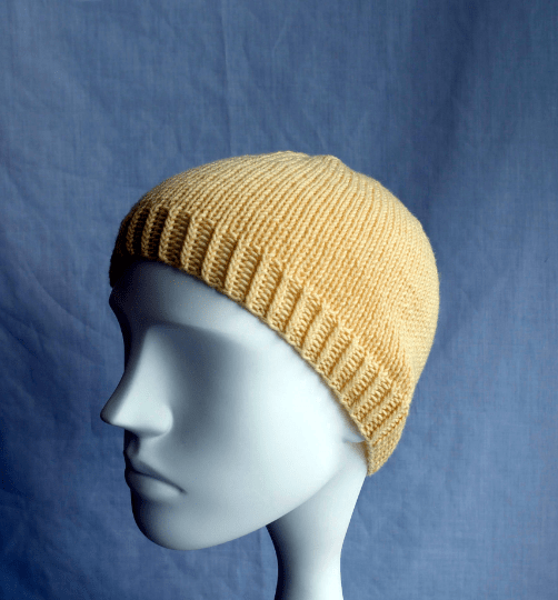 This simple stockinette stitch hat is broken up by a panel of garter stitch, adding an interesting detail to a simple stylish hat.